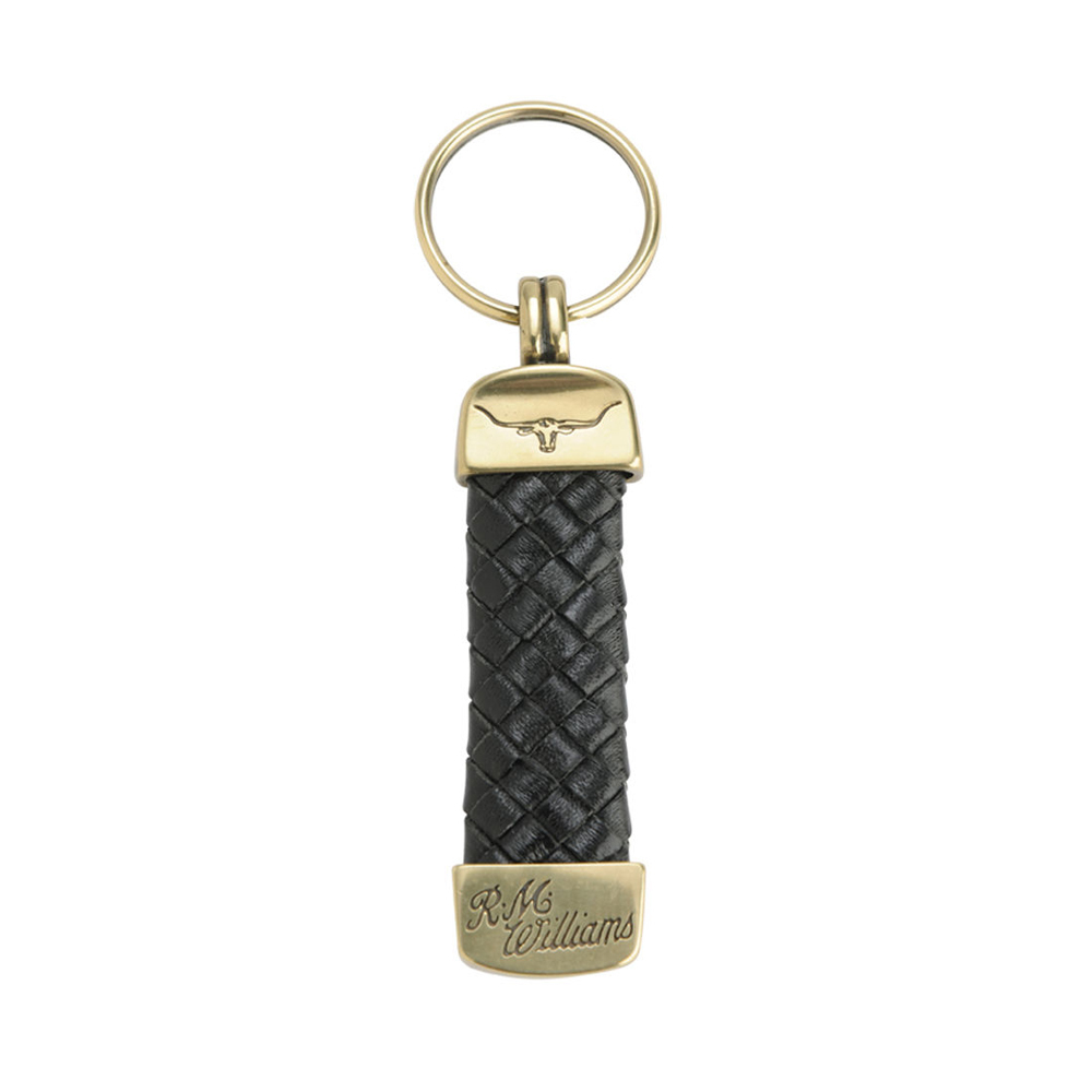 Crafted from plaited kangaroo leather, this key ring includes brass toned fittings with R.M.Williams and Longhorn embossing. Made in Australia.