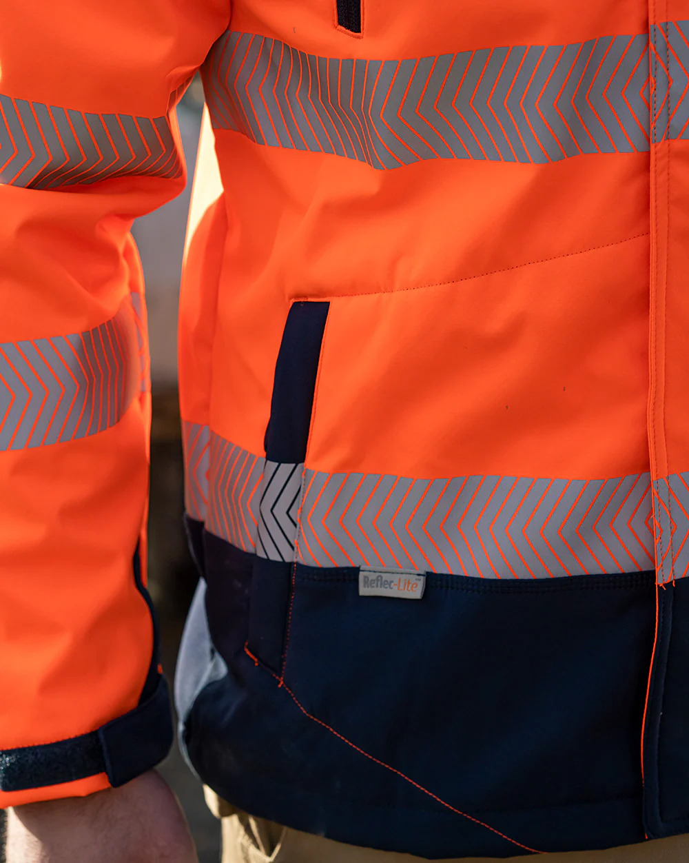 For those days when you need something warm, soft and great fitting, look no further than the Jones Softshell Coat. This 3 layer coat has not only been cleverly designed with great and practical features for your everyday needs on the job, but bonded with a high pile fleece lining for the ultimate warmth on those cold and dreary days. Bio-motion tape configuration will also keep you safe and seen on the worksite – the perfect combination jacket.