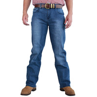 The Ringers Western Mens Sturt Classic Fit Jean Relaxed Leg Dark Blue are a relaxed fit with durability in mind for hard work in the yards. Made from a firm rigid and tough denim material they won't get in your way whether riding or on foot.
