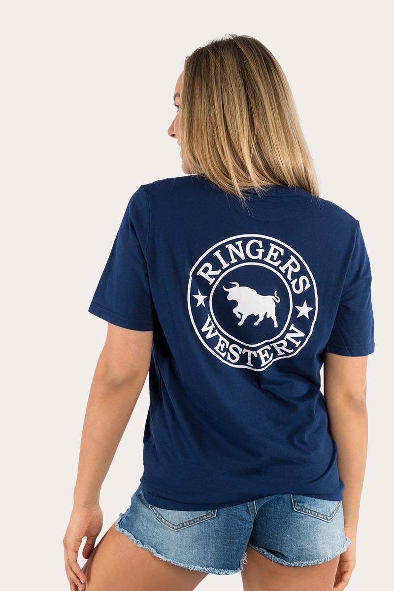 Ringers Western Womens Signature Bull Loose S/S Tee (220018RW) Navy with White Print 10