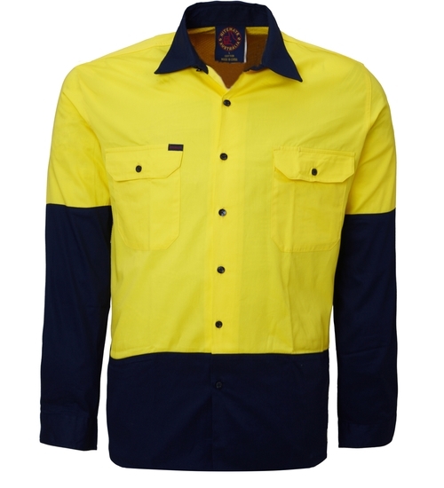Ritemate Mens Vented Open Front L/S Shirt (RM107V2) Yellow/Navy XS