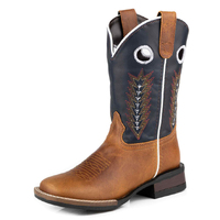 Roper Childrens James Western Boots (18911352) Tan Burnished/Navy Leather 9
