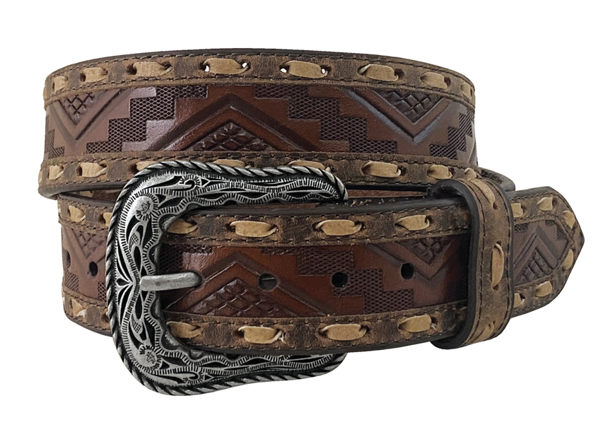 Featuring Aztec inspired embossed leather and contrasting leather stitching, this western belt will be a unique addition to your wardrobe.