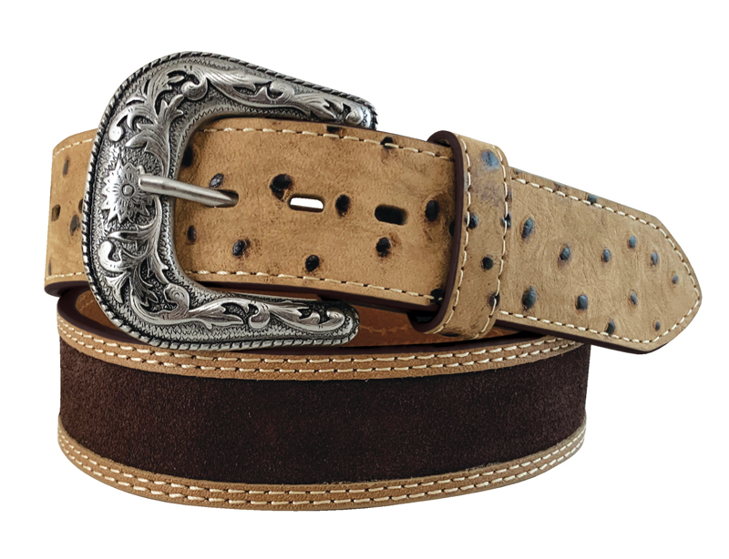 Featuring ostrich leather and suede leather with contrasting stitching, this is a truly unique western belt.