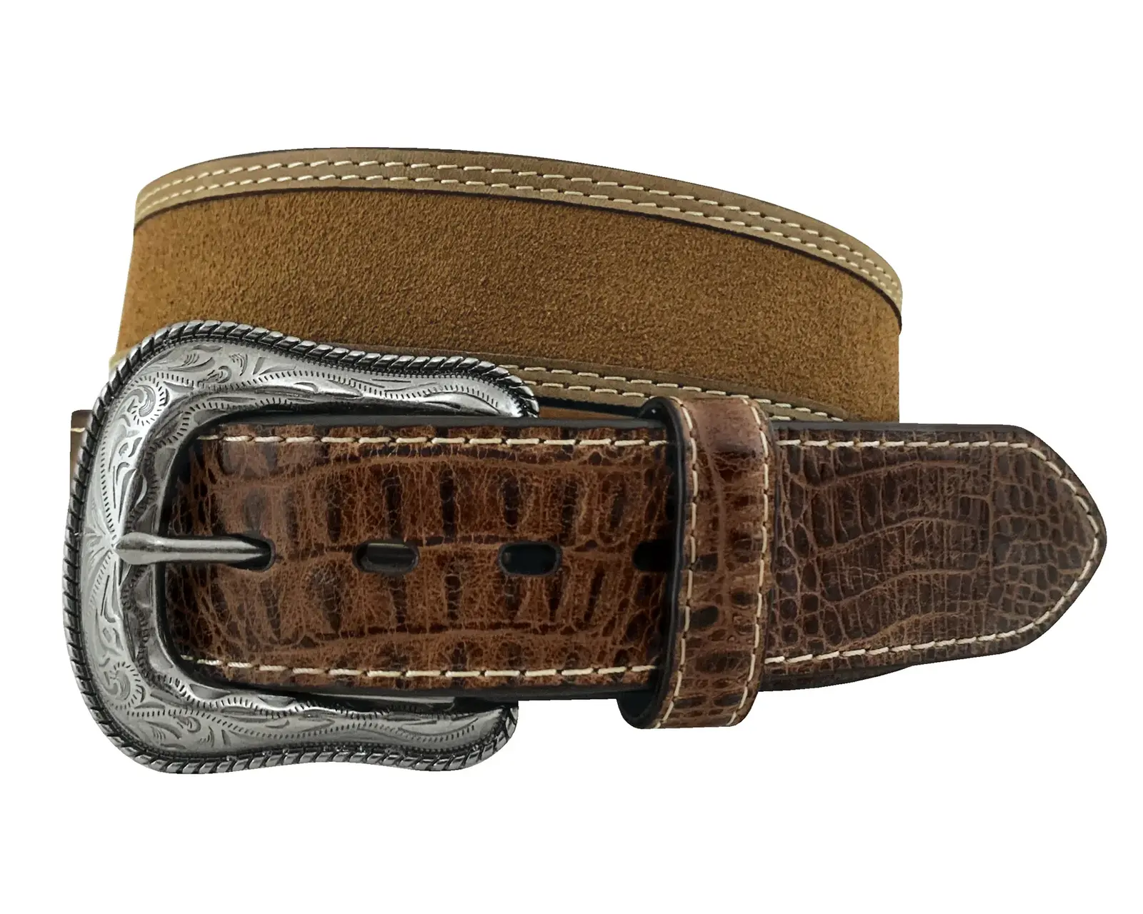 Roper Mens 1.1/2" Suede Leather Tuscan Bambino Tabs Belt (8665500T) Cognac/Tan 34 [SD]
