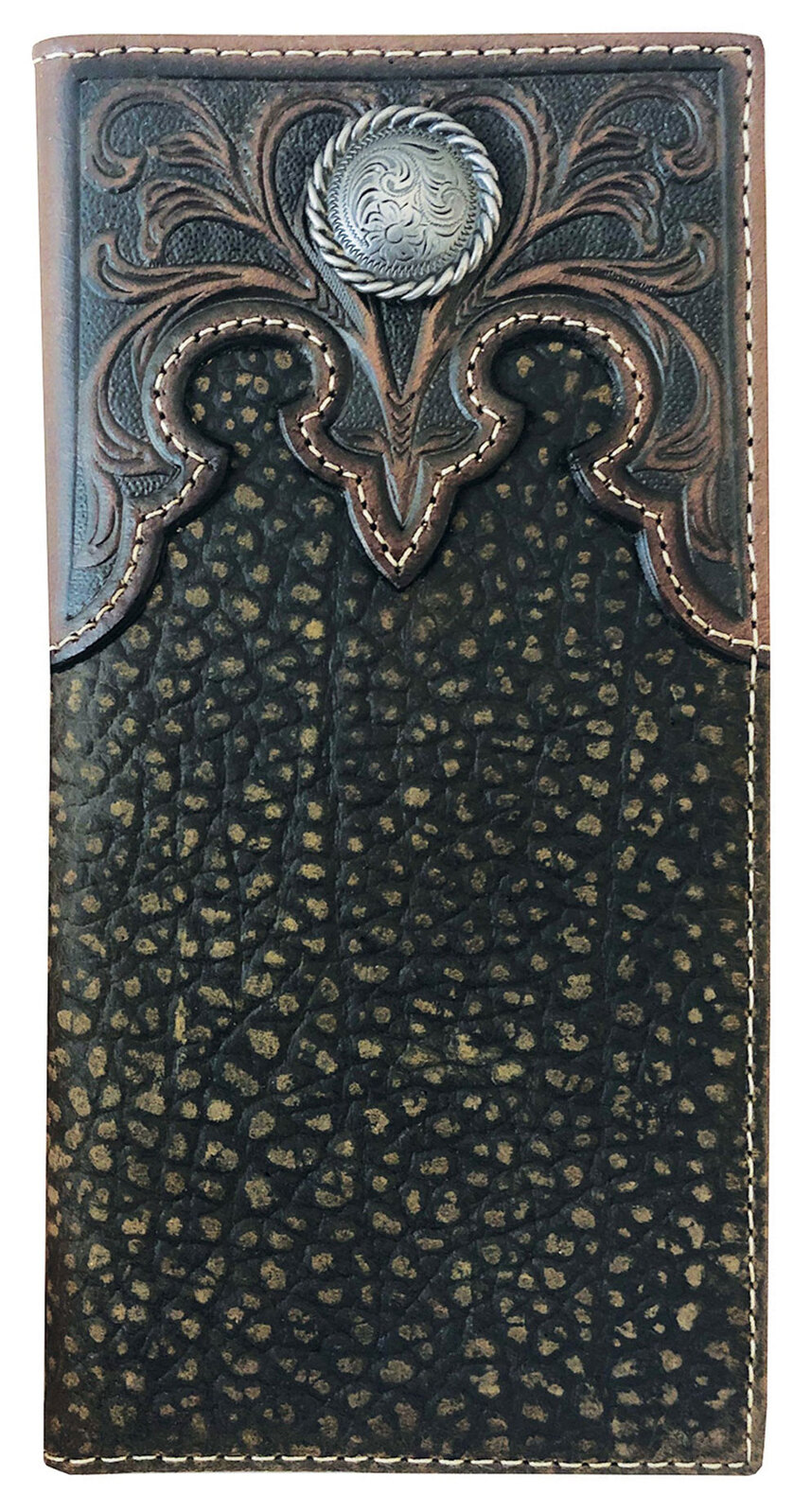 There's nothing quite like a quality leather wallet. They age beautifully, and they live a long life! This one features a layered tooled yoke with a central concho.