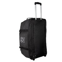 Great design and smart looking, this roomy travel bag is ideal for longer trips. It has a sporty look with an all grey body, black straps and white logo stitching. There is a zippered pocket on the outside and a large zippered pocket inside the main compartment. There is also a large zipper on the base inside to get in between the lining and the main compartment. With handles on all four sides, an adjustable padded shoulder strap, two wheels on the base at one end and an extendable handle, it makes travelling easy. The removable shoulder strap measures 59″ from hook to hook at its longest.