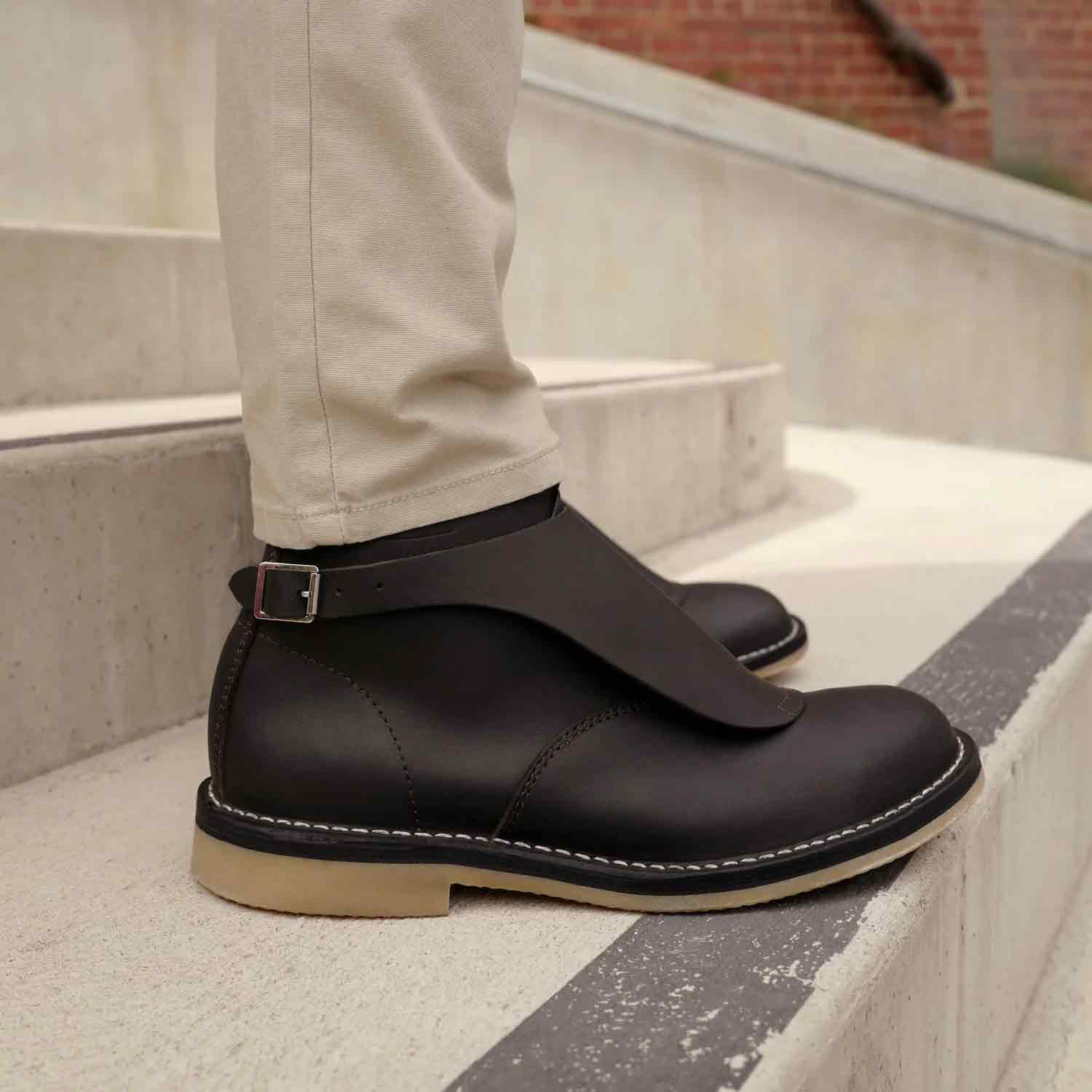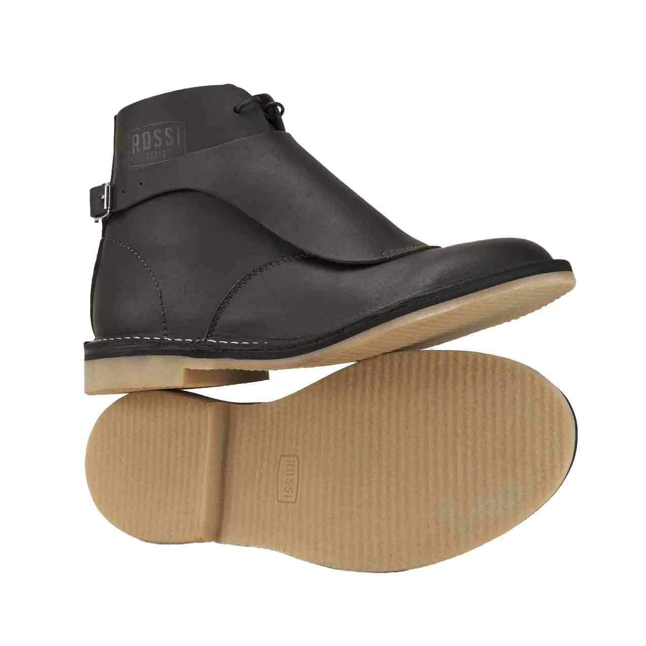 Made with ‘stitchdown’ construction, where the upper is sewn onto the midsole. The crepe sole is flexible and slip resistant. The upper is made from high quality full grain kip leather with a dust cover to protect the laces. It’s supple, robust, and ages well which befits this traditional Rossi Boots hero.