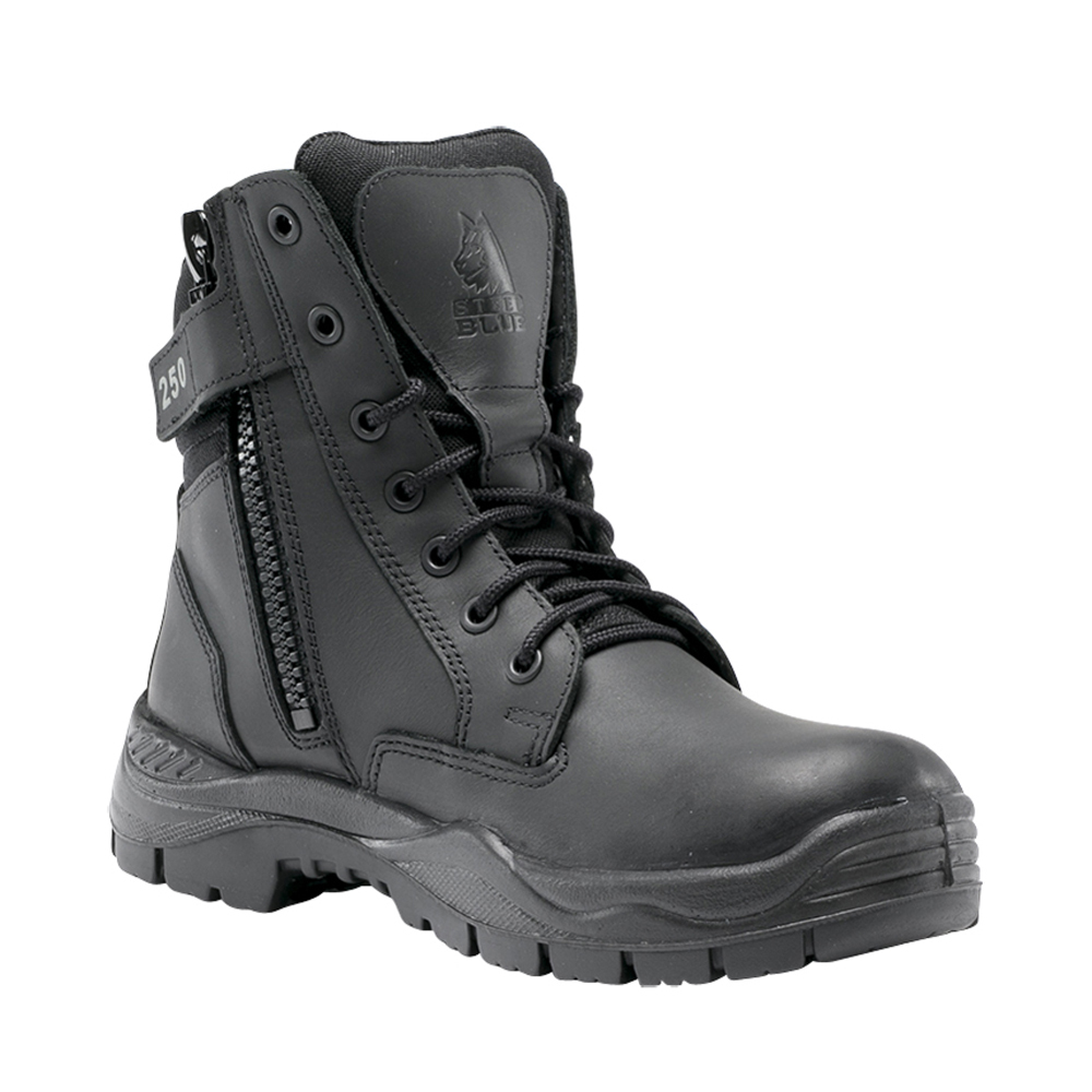 The Enforcer is a 150mm derby style, lace-up Ankle Boot with an industrial grade zipper so you don’t have to worry about tying up laces every day.