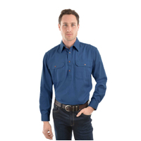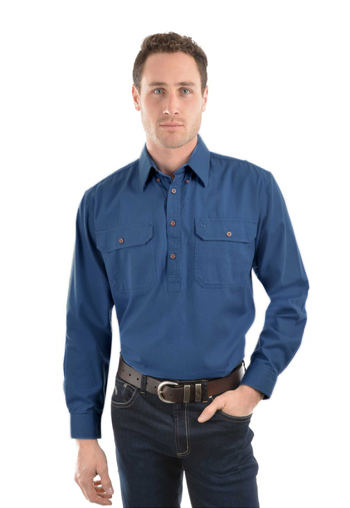 A classic work shirt, the half button is a much loved alternative to a full button shirt for country people, workers and tradies all over Australia. They're easy on/off (less buttons) and safer because there are no shirt-tails to get caught in machinery or on fences!