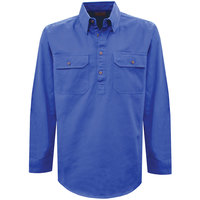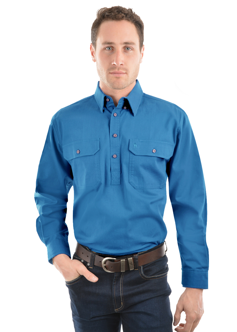 A classic work shirt, the half button is a much loved alternative to a full button shirt for country people, workers and tradies all over Australia. They're easy on/off (less buttons) and safer because there are no shirt-tails to get caught in machinery or on fences!