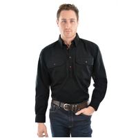 A classic work shirt, the half button is a much loved alternative to a full button shirt for country people, workers and tradies all over Australia. They're easy on/off (less buttons) and safer because there are no shirt-tails to get caught in machinery or on fences!