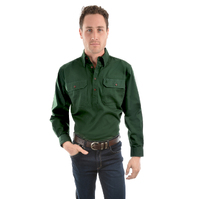 A classic work shirt, the half button is a much loved alternative to a full button shirt for country people, workers and tradies all over Australia. They're easy on/off (less buttons) and safer because there are no shirt-tails to get caught in machinery or on fences!