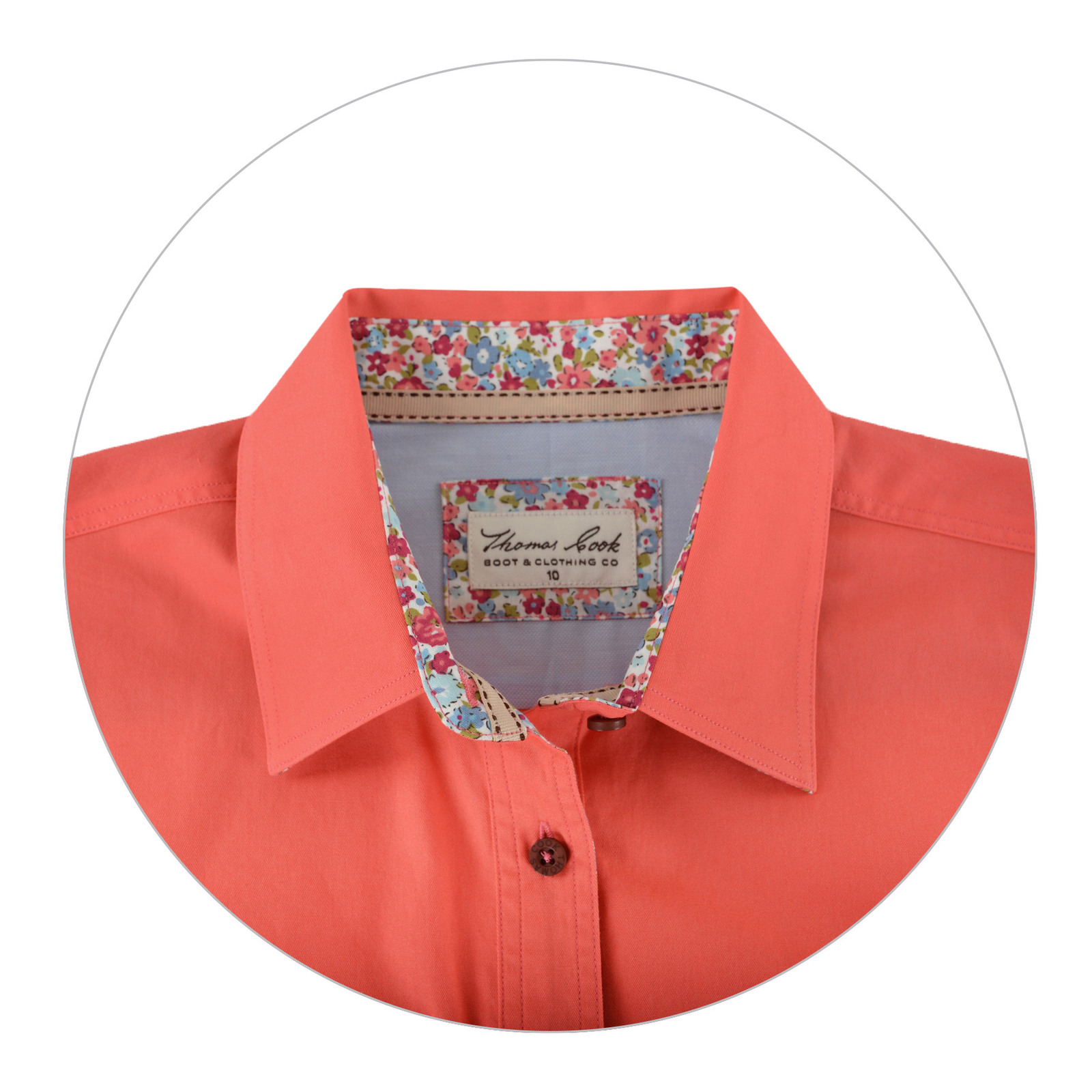 Thomas Cook Womens Contrast Light Drill Half Placket L/S Shirt (TCP2100182) Calypso Coral 12