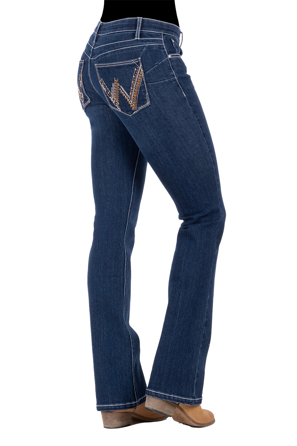 - Feature embroidery on back pockets