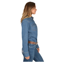 Wrangler Womens Jay Denim Western L/S Shirt (XCP2127850) Denim 8