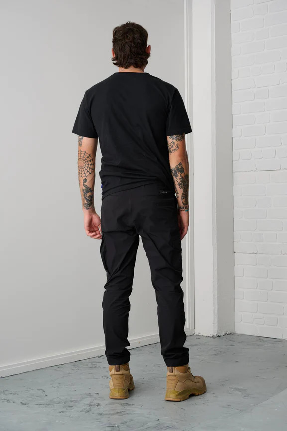 - 8 pockets including twin cargo pockets, LHS zip pocket, RHS flap pocket, top entry welt pocket and phone pocket