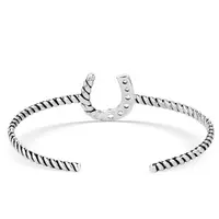 This Montana Silversmith Roping Luck Cuff Bracelet will add a little bling - and maybe a bit of luck! The twisted rope design features a horsehoe complete with cubic zirconia crystals for added sparkle.
